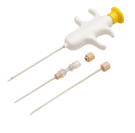 Este sistema MEDEASY está disponible en versiones con punta trocar, biselada y tipo espada, con marcas cada centímetro para un control total durante la inserción. También puede emplearse junto a una aguja coaxial, optimizando los resultados y reduciendo el trauma en el procedimiento.